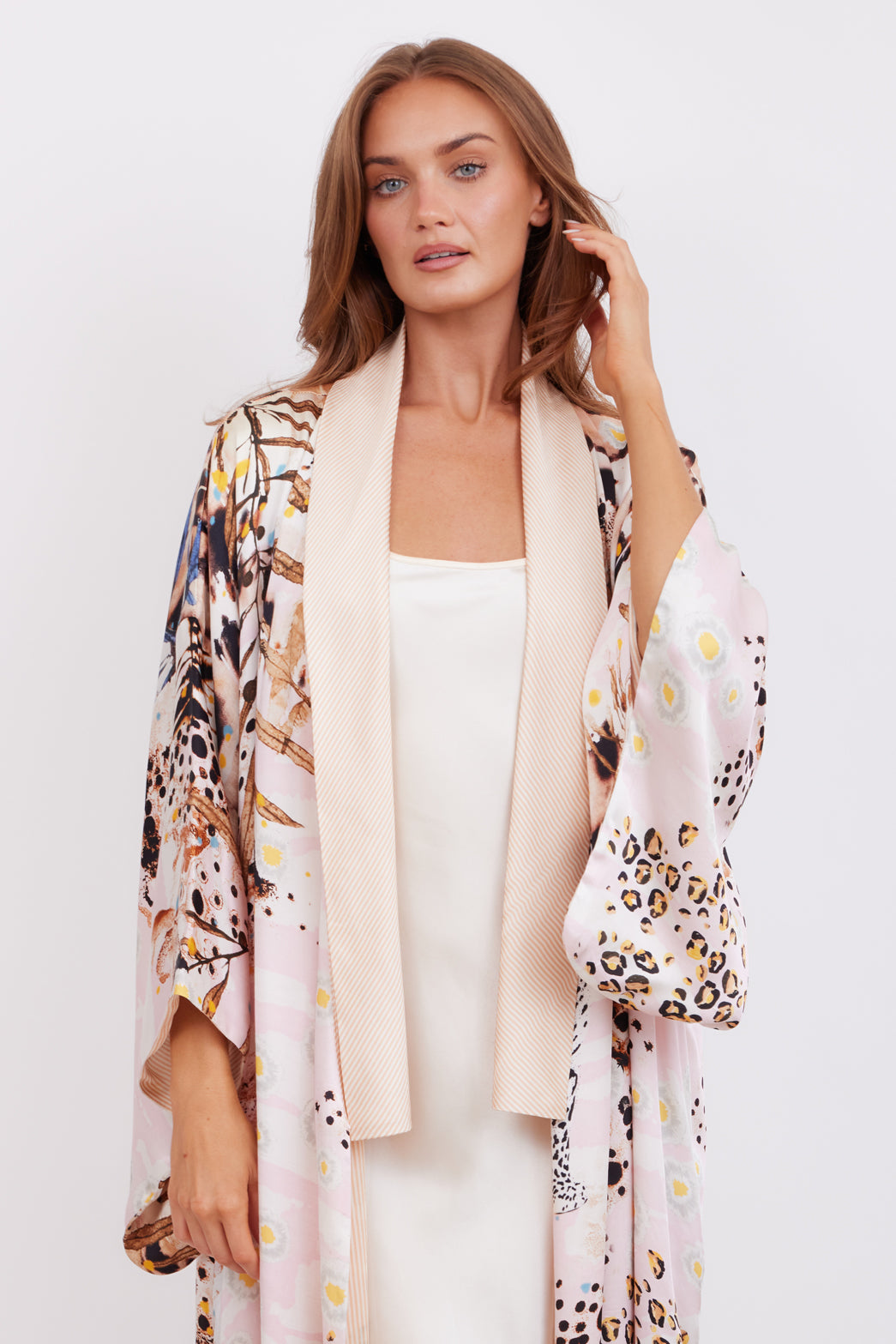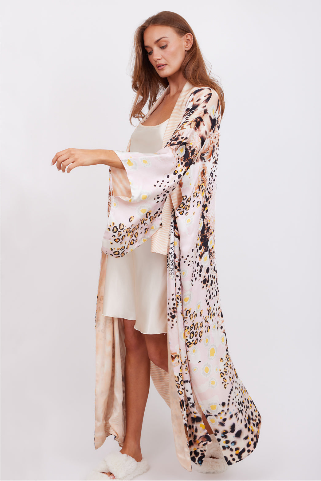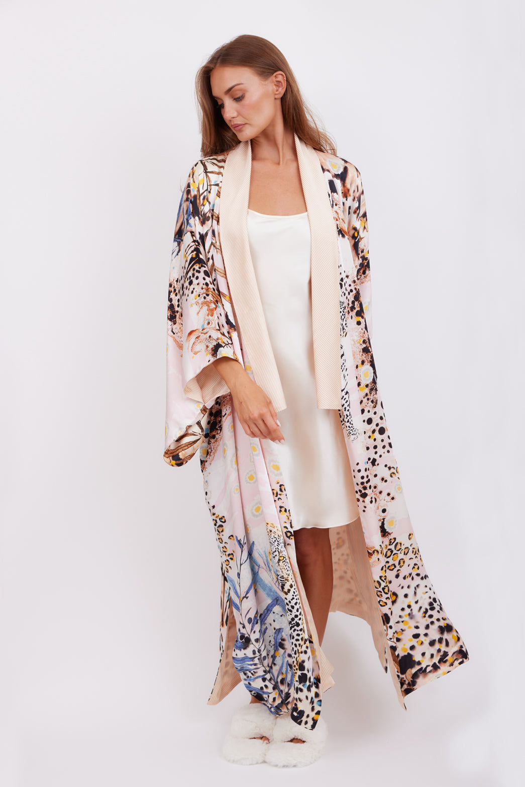 A fully reversible 2-in-1 kimono - hand-finished in buttery satin.