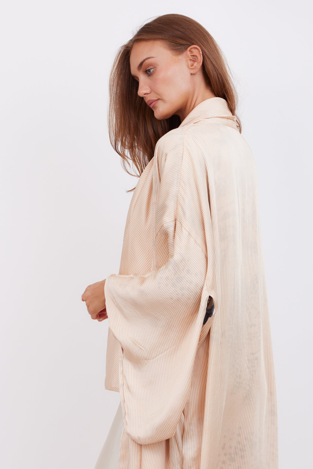 With pockets and an optional matching belt, this modern heirloom is soft, versatile, and deeply considered — a collector’s garment that embodies the art of quiet luxury.